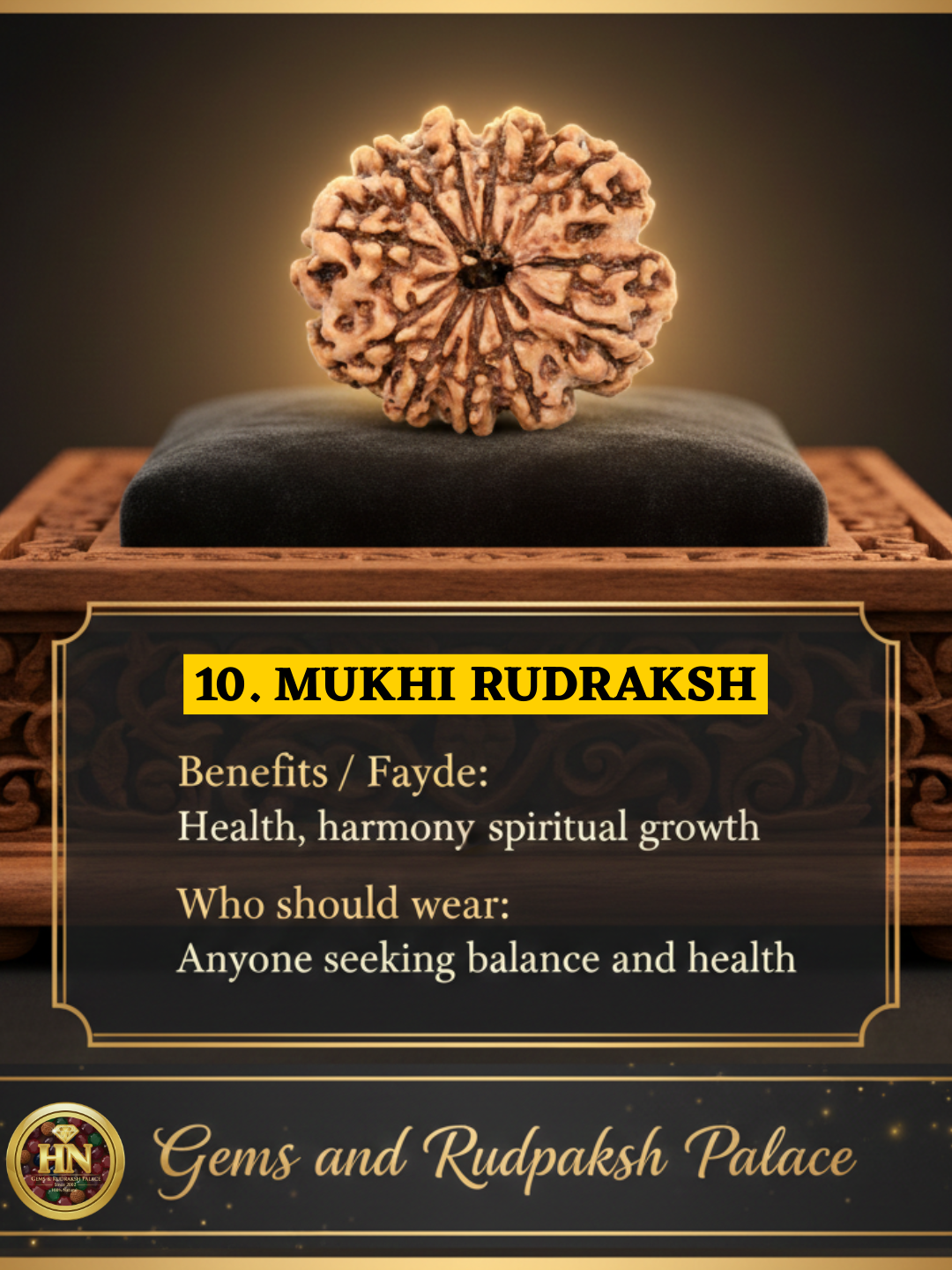 The 10 Mukhi Rudraksha is a rare gift of nature, characterized by ten natural lines (mukhs) on its surface. Unlike other beads, it is not ruled by a specific planet but represents the Dashavatar (ten incarnations of Lord Vishnu). This makes it a “universal pacifier” that calms the ill effects of all nine planets while creating a divine shield around the wearer. Whether you are facing legal hurdles, “Nazar” (evil eye), or internal fears, this bead acts as a spiritual guardian.