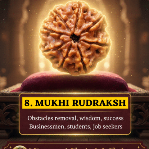 5 Mukhi Rudraksha: Boosts mental focus, offers spiritual strength, and provides a protective shield — connected to Lord Shiva’s energy.