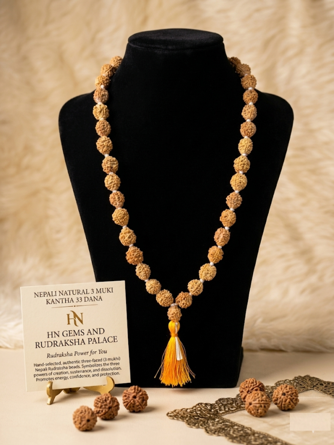 Transform your life with the purifying power of the Nepali Natural 3 Mukhi Rudraksha Kantha (33 Dana)—a sacred fire that burns away the past and lights the path to confidence, clarity, and new beginnings.