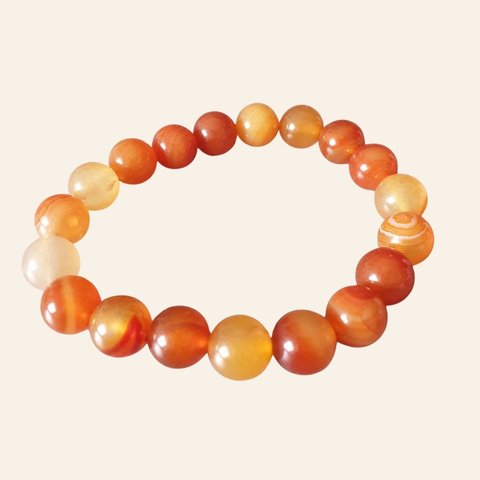 Brighten your aura with the vibrant orange cabochon bracelet. Get a 5 Mukhi Rudraksha free for spiritual vitality.